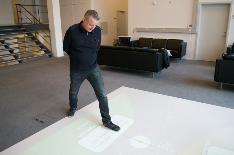 WizeFloor som redskab til at tackle demensDemente er især udfordret i at huske ting og genkende deres daglige rutiner i hverdagen. Det kan bl.a. puslespil på WizeFloor være med til at modvirke. Gennem puslespillene lærer de demente at danne sig et pejlemærke på billedet. Pejlemærket kan fx være en blomst nederst i venstre hjørne, og så ved den demente, hvor han eller hun skal starte. Pejlemærker kan også bruges i hverdagen - fx hvis den demente skal lære en ny rute i byen, så skal han eller hun starte med at danne et pejlemærke i begyndelsen af ruten og derefter et nyt pejlemærke for til sidst at ende ved rutens endestation. Det er netop baggrunden for, at WizeFloor indgår i undervisningen på Social- og Sundhedsskolen Fredericia, Vejle og Horsens. Underviserne og eleverne bruger WizeFloor i undervisningen både for at styrke de demente og for at klæde studerende og dermed det kommende personale inden for plejesektoren på til at arbejde med demente. Især eleverne er gode til at bygge spil og læringsaktiviteter, fortæller Per Nordby Jensen, IKT- og læringsansvarlig på skolen. Social- og Sundhedsskolen har de sidste tre år et WizeFloor i hver afdeling. Skolen, der har til formål at uddanne medarbejdere til pleje- og omsorgsområdet samt det pædagogiske område, bruger især WizeFloor i undervisning inden for fysiologi, anatomi og faglige emner som demens og sygepleje. Undervisere og elever bygger selv de spil, der skal indgå i undervisningen gennem WizeFloor-app’en. Social- og sundhedsskolen er i fuld gang med at opbygge en ny læringsportal, der skal rumme alle de undervisningsforløb, som skolen udbyder, og her er WizeFloor også tænkt med. IT er et lærerigt redskabSocial- og sundhedsskolen er fyldt med teknologi målrettet læring. Teknologien tilbyder eleverne mange nye spændende måder at lære på. Brobygger-eleverne fra folkeskolerne, der kommer for at snuse til erhvervsskolen, er glade for det interaktive gulv.