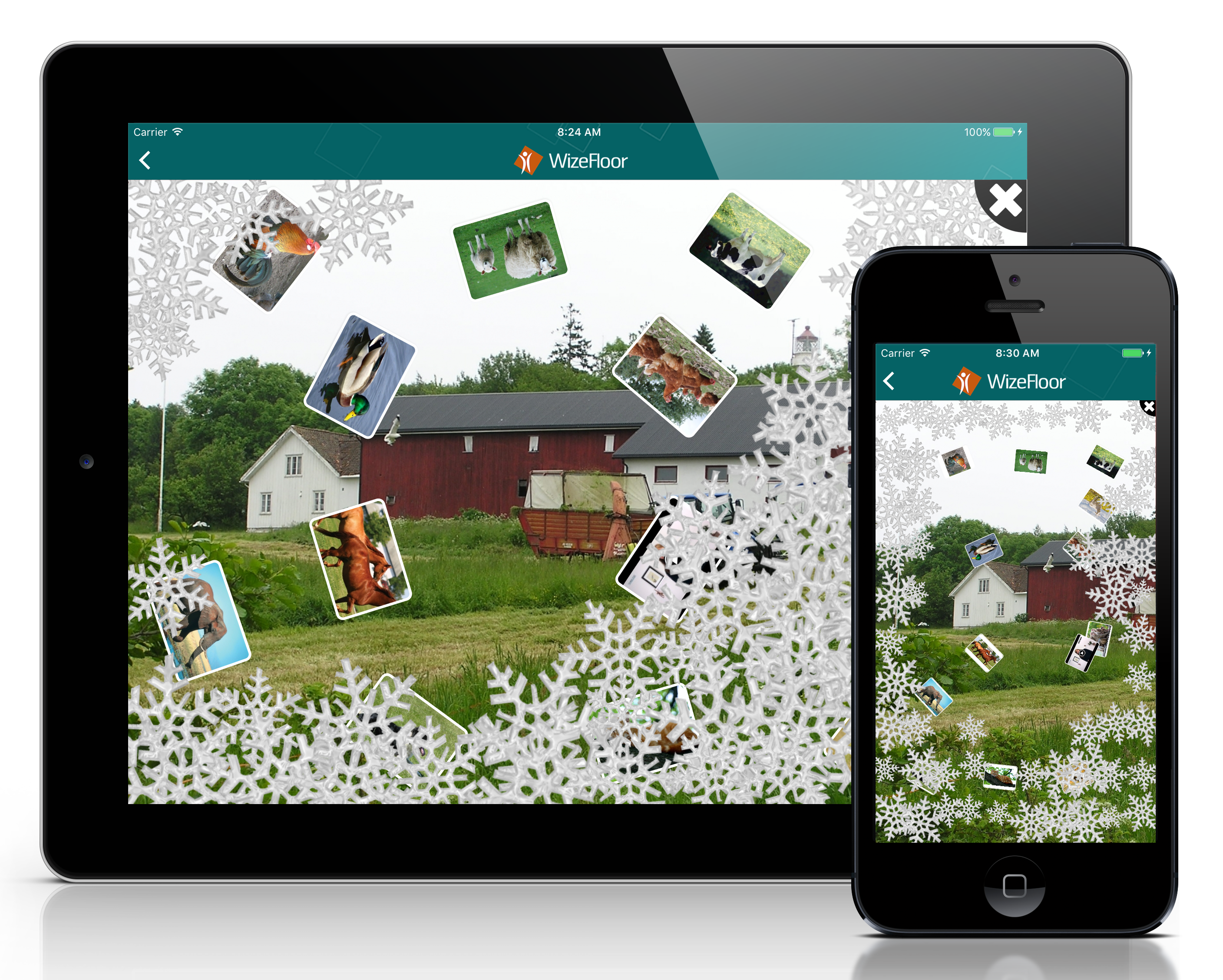 ChessSymmetryEn anden ny applikation i denne version er ChessSymmetry, der er den seneste tilføjelse til vores skak suite på WizeFloor. Formålet i applikationen er at træne symmetrisk forståelse med skakbrættet. Hver spil består af seks opgaver, der kommer i tre sværhedsgrader. I de første tre skal man tegne symmetrilinien med fødderne, mens man i de sidste tre skal placere fysiske objekter, så de er symmetrisk placeret omkring en linie. WIZEWALLSom noget nyt kan du nu bruge en skærm på væggen sammen med dit gulv. Skærmen opdateres i forhold til det, der afvikles på gulvet. F.eks. vokser der blomster op på væggen samtidigt i blomster app'en, og der står tilskuere og hepper i fodbold app'en. Når der er skrabelag på gulvet, kan man også skrabbe på væggen. I andre applikationer vises der information om spillet såsom titel, beskrivelse og point antal. Det er også muligt at pause spillet, anbefale og navigere tilbage til hovedmenuen på gulvet ved at trykke på skærmen. WizeWall er et tilkøbsmodul, der kan installeres på eksisterende eller ny hardware, så kontakt os endelig hvis du er interesseret i at vide mere. WIZETABLEDen nye version indeholder også en lang række forbedringer i forhold til at blive afviklet på touchskærme og touchborde. Softwaren indeholder alle de samme muligheder for spil og redigering som gulvsoftwaren. AndetOpdateringen indeholder også en læng række andre forbedringer: