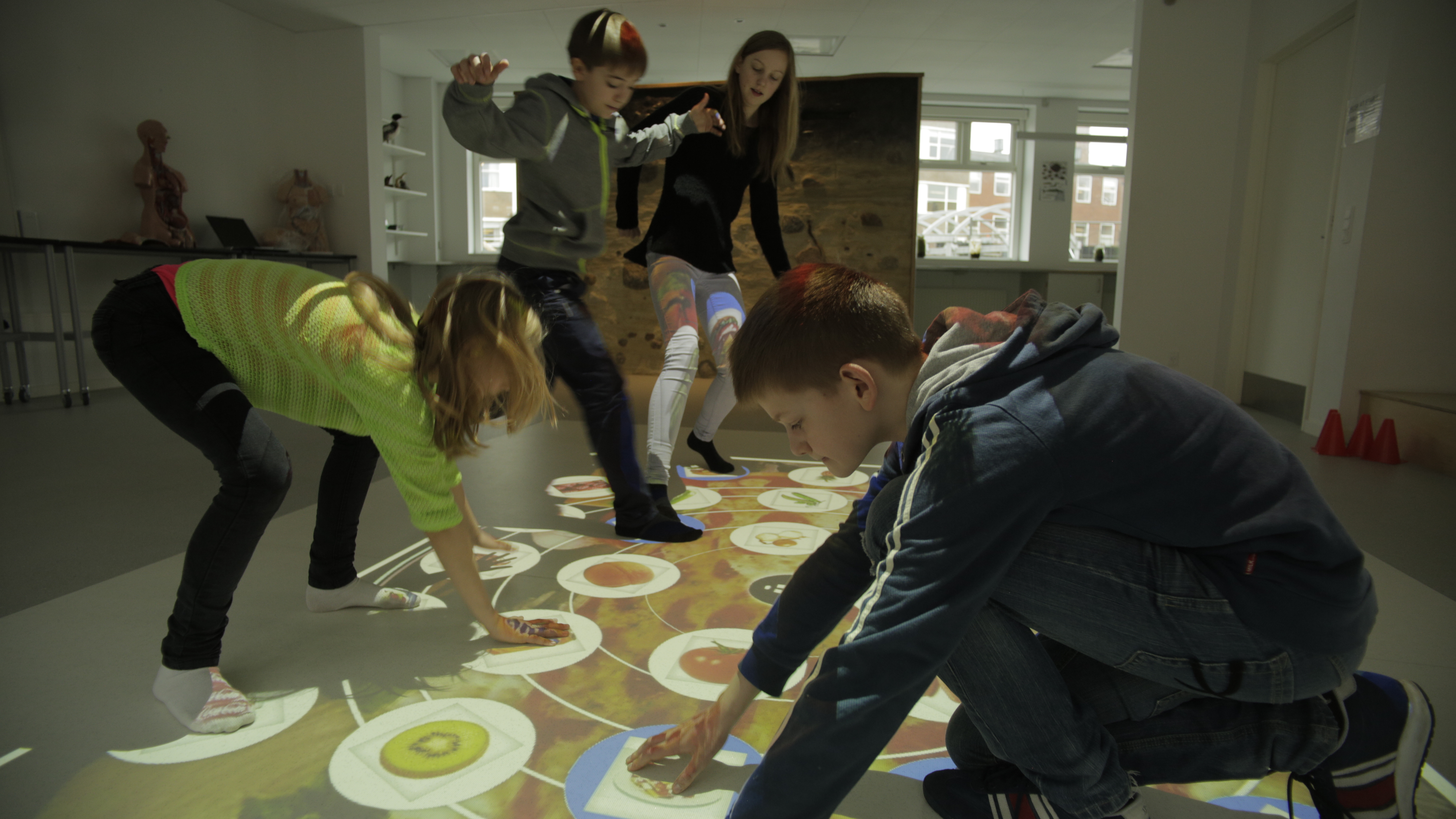 Flere af applikationerne, f.eks. Quiz, Afstemning, Vendespil, Stepstone og Geometrix har nu fået en startskærm, der viser titlen og beskrivelsen af aktiviteten. Information om opretteren og målgruppen bliver også vist. Når man trykker på startknappen, starter spillet. KLAVERKlaver har fået nye funktioner i denne version. Det er nu muligt at oprette en aktivitet med forskellige sange, som børnene kan spille på klaveret. Hver tone i sangen vises med en lille smiley på tangenterne. Når børnene trykker på tangenterne, fortsætter sangen. Man kan nu nemt oprette nye sange via redigeringsværktøjet. Det er også muligt at ændre baggrundsbilledet og tilføje en baggrundslyd, såsom et trommebeat. STEPSTONEI Stepstone applikationen er det nu muligt at indstille det antal sten, man ønsker at bruge. Dette gør det nemmere at lave spil til yngre børn, og det er hurtigere at producere spillene. Det er muligt at anvende 12, 16, 24 og 30 sten i aktiviteterne. VENDESPIL (HOLD)Vi har ændret holdudgaven af Vendespil i denne version for at gøre det nemmere for yngre spillere. Det kører ikke længere på tid, og layoutet af kort er det samme som i singleplayer-versionen. TEMAKORTI Temakort skal man nu trykke på begge hjørneknapper for at få afspillet videoer i fuld skærm. Herved undgår man, at børnene kommer til at gå ud af videoen, mens de danser på gulvet. OPDATERINGHvis du vil opdatere Windows-softwaren, skal du holde øje med knappen "Opdatering tilgængelig" i din gulvmenu. Klik på denne knap og følg instruktionerne. Web-appen opdateres automatisk, når du logger ind i appen.