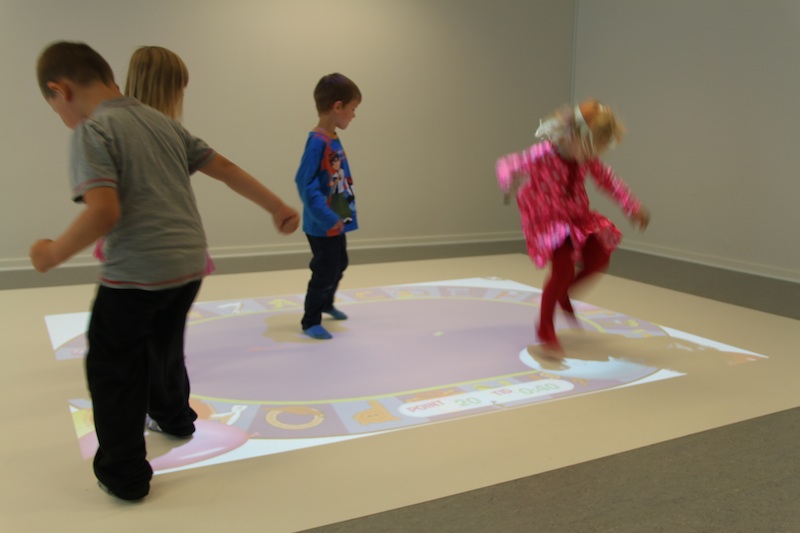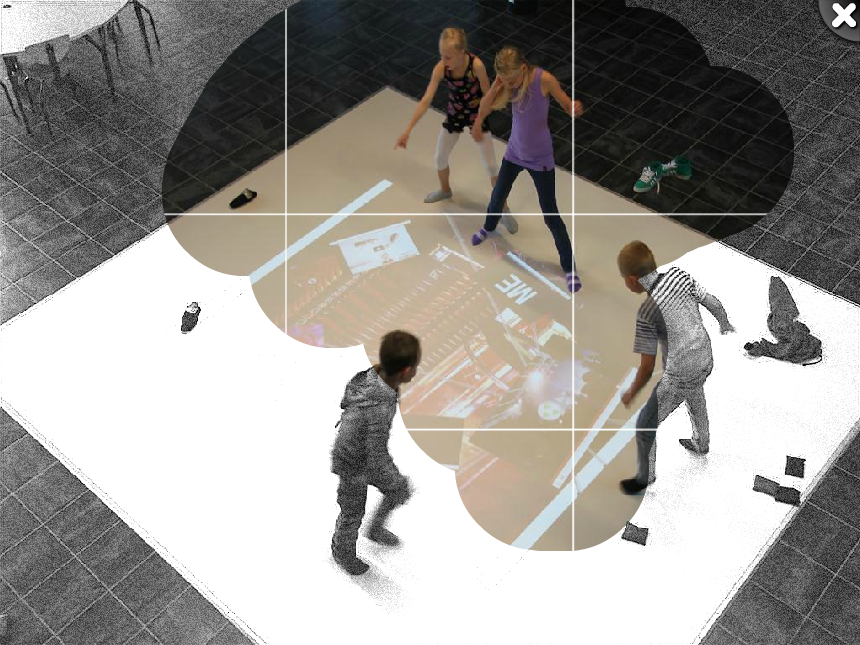 Skrabespillet er udarbejdet sammen med projektet ”Hop&Lær”, der er et samarbejde mellem Veng Skole og Børnehus og VIA Center for Undervisningsmidler. Projektet er støttet af Undervisningsministeriets tips- og lottomidler. PuslespilPuslespillet er i denne version blevet væsentligt forbedret både interaktion og stabilitet. Der er to nye indstillingsmuligheder: valg af antal brikker (4, 6 eller 9) og farvelægning af billedet i starten. Ved farvelægning af billedet skal kroppen bruges som en stor pensel til at farvelægge en sort/hvid udgave af puslespillet. Når billedet er blevet farvelagt transformeres billedet til et puslespil, som skal lægges. VendespilApp'en Vendespil er blevet delt op i to apps - henholdsvis en almindelig udgave og en holdudgave. I den almindelige udgave er det muligt at spille uden brug af risposer til at vælge brikker på gulvet. Der er desuden kommet mulighed for at vise brikkerne et antal sekunder ved opstart, så børnene skal huske, hvor de matchende brikker befandt sig. GulvmenuGulvmenuen er blevet kraftigt forbedret i denne version af softwaren og tilbyder en lang række nye muligheder for at bruge gulvet uden brug af tastatur. Nogle af ændringerne er: